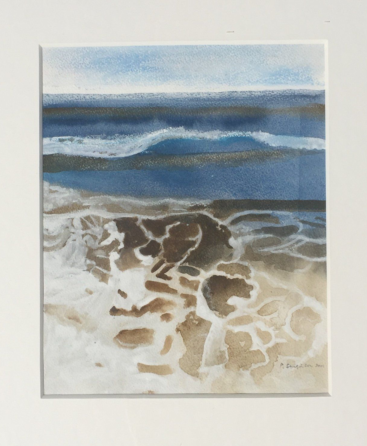 Mounted and framed in washed wood